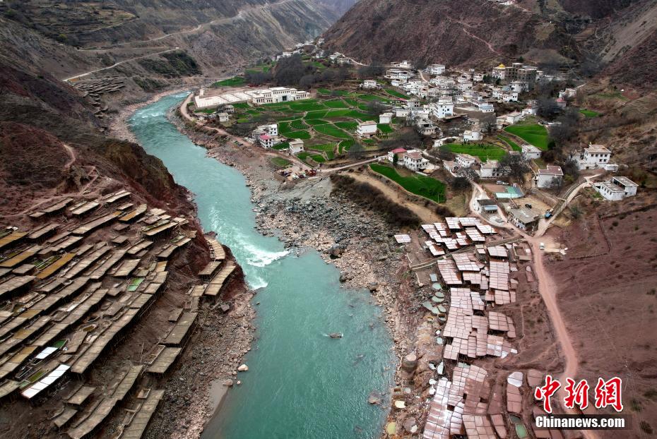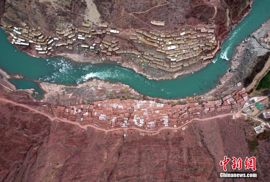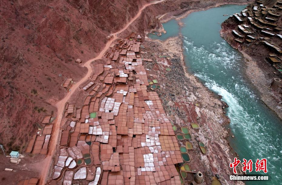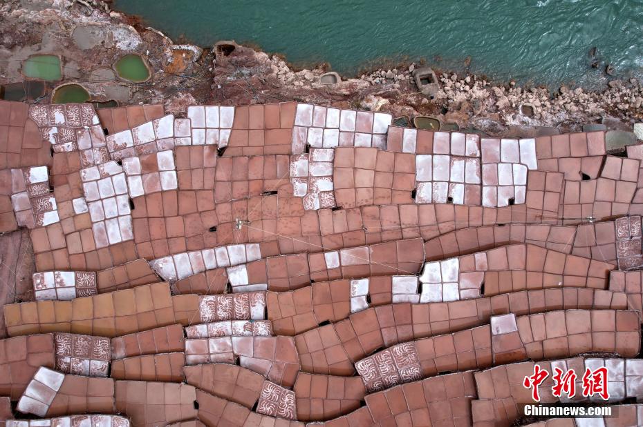 在西藏昌都芒康縣納西民族鄉(xiāng)瀾滄江兩側(cè),有一處古老的、大大小小數(shù)千塊鹽田。史料記載,當?shù)貢覃}歷史距今已有1000多年。木柱搭建的鹽田,高低錯落,依河谷山勢,在臨江兩岸蔓延。當?shù)孛癖姀慕系柠}井、鹽池中抽出鹵水,引入鹽田,經(jīng)過陽光與風的杰作,結(jié)晶成鹽。進入鹽田,房內(nèi)頂部到處懸掛鐘乳狀晶鹽,仿若“水晶宮”的世界。圖為2月13日,西藏昌都芒康千年古鹽田。(無人機照片)