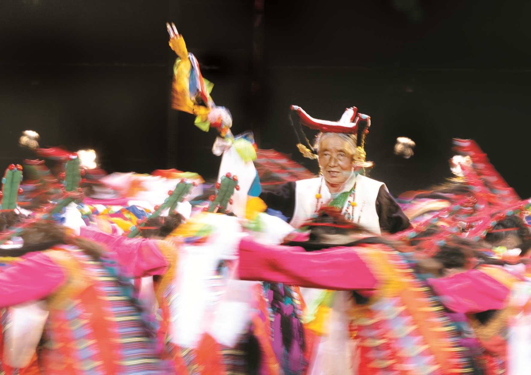 “諧欽”是西藏傳統(tǒng)歌舞節(jié)目,歷史悠久,深受廣大群眾喜愛。編導(dǎo)吳金曲珍介紹說:“這個(gè)節(jié)目是根據(jù)熱堆村的一個(gè)原生態(tài)舞種改編而成的,里面表現(xiàn)的是豐收的喜悅和對(duì)家鄉(xiāng)景色的贊美,節(jié)目中表演的34名演員包括一位老阿媽在內(nèi),都是群眾?!?/p>