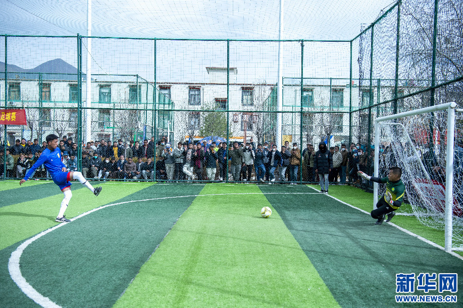 2月14日,巔炯邁瓦隊球員在點(diǎn)球大戰(zhàn)中射門。新華網(wǎng) 旦增努布 攝