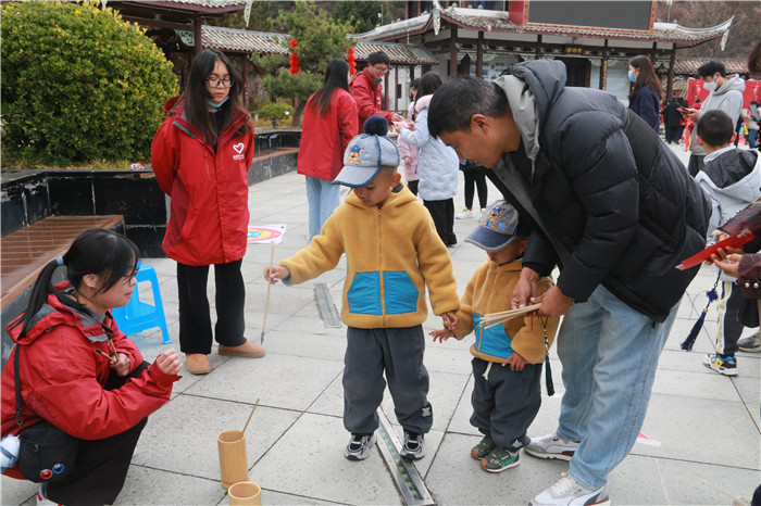藏歷新年游園活動(dòng)由趣味游戲、燈謎競猜、我與2023同框、新年微心愿、樂頌祖國等部分組成。趣味游戲環(huán)節(jié),設(shè)置了8個(gè)游戲點(diǎn),每個(gè)點(diǎn)位的參與人員自覺排起長隊(duì),游戲項(xiàng)目均老少皆宜,不同民族的市民扶老攜幼“全家總動(dòng)員”,團(tuán)結(jié)合作,樂在其中,拉近了親朋之間的距離。燈謎競猜環(huán)節(jié),結(jié)合黨史、新中國史和百姓生活,懸掛800個(gè)謎面,現(xiàn)場市民們興致昂揚(yáng),發(fā)揮自己的聰明才智揭下謎底,兌換獎(jiǎng)品?!拔遗c2023同框”合影活動(dòng)中,大家臉上洋溢著幸福的笑容,站在新時(shí)代、謀求新作為?!靶履晡⑿脑浮痹S愿活動(dòng)現(xiàn)場始終洋溢著幸福、快樂、愉悅的氣息,大家紛紛書寫下自己的愿望,表達(dá)自己的理想追求和奮斗目標(biāo)。