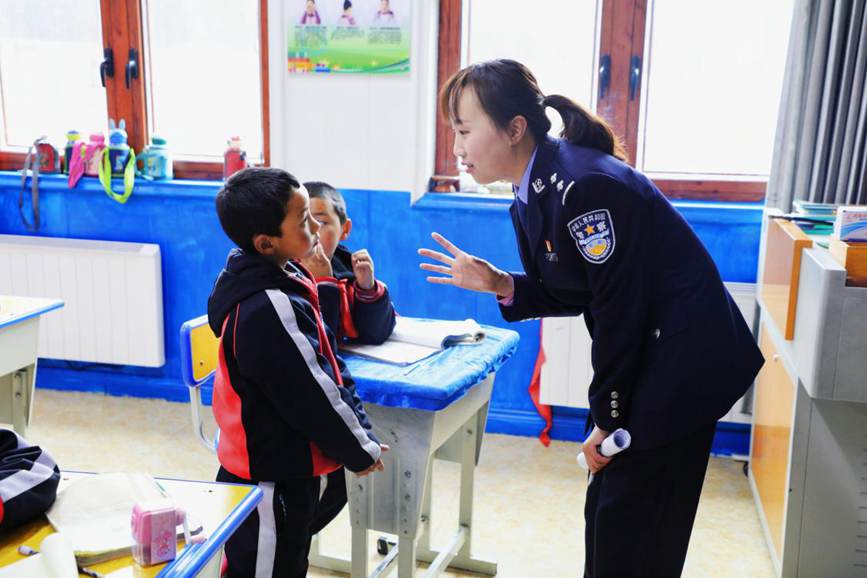 對于生活在大山深處的孩子們來說,外面的世界充滿吸引力,張騰心和侯莉就是他們與外面世界連結(jié)的橋梁。因此,去學校上課是她們?nèi)粘9ぷ髦凶钪匾囊粋€環(huán)節(jié)?!拔覀兌己芟矚g警察媽媽,教我們寫作業(yè),給我們買零食,還會講很多有趣的故事?!?歲的扎西開心地說。
