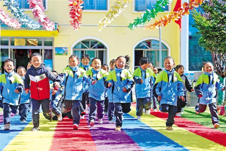 配圖:山南市瓊結(jié)縣雙語(yǔ)幼兒園的孩子們?cè)趨⒓诱n外活動(dòng)。(資料圖片)