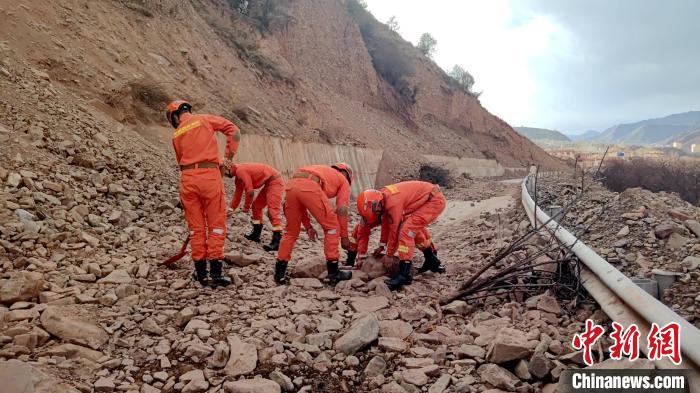 圖為昌都市卡若區(qū)森林消防中隊“火焰藍(lán)”志愿服務(wù)隊清理滑坡路段。 昌都市卡若區(qū)森林消防中隊供圖