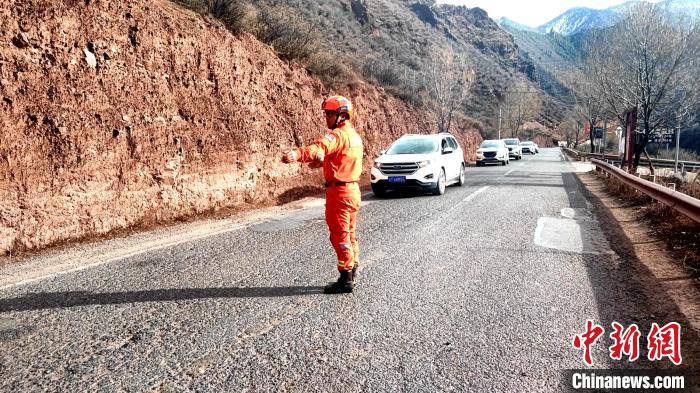 圖為昌都市卡若區(qū)森林消防中隊“火焰藍(lán)”志愿服務(wù)隊指揮過往車輛安全通行。 卡若區(qū)森林消防中隊“火焰藍(lán)”志愿服務(wù)隊供圖