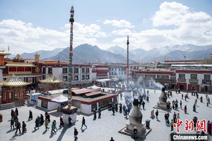 楊柳抽芽、桃李含苞。3月,海拔3600多米的高原古城拉薩處處可見春天的氣息。林廓、八廓等轉經(jīng)道上的藏傳佛教信眾、市民,以及來自五湖四海在大昭寺、布達拉宮參觀的游客人流如織,大家共同沐浴著高原的春風。