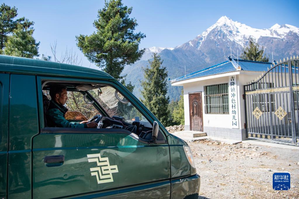 大約過(guò)了半個(gè)小時(shí),巴桑頓珠到達(dá)第一站——沖色村幼兒園。他拿起一疊捆好的報(bào)紙,放到了收發(fā)室門(mén)口。