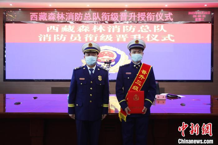 3月22日,頒發(fā)晉升命令狀。 西藏森林消防總隊供圖