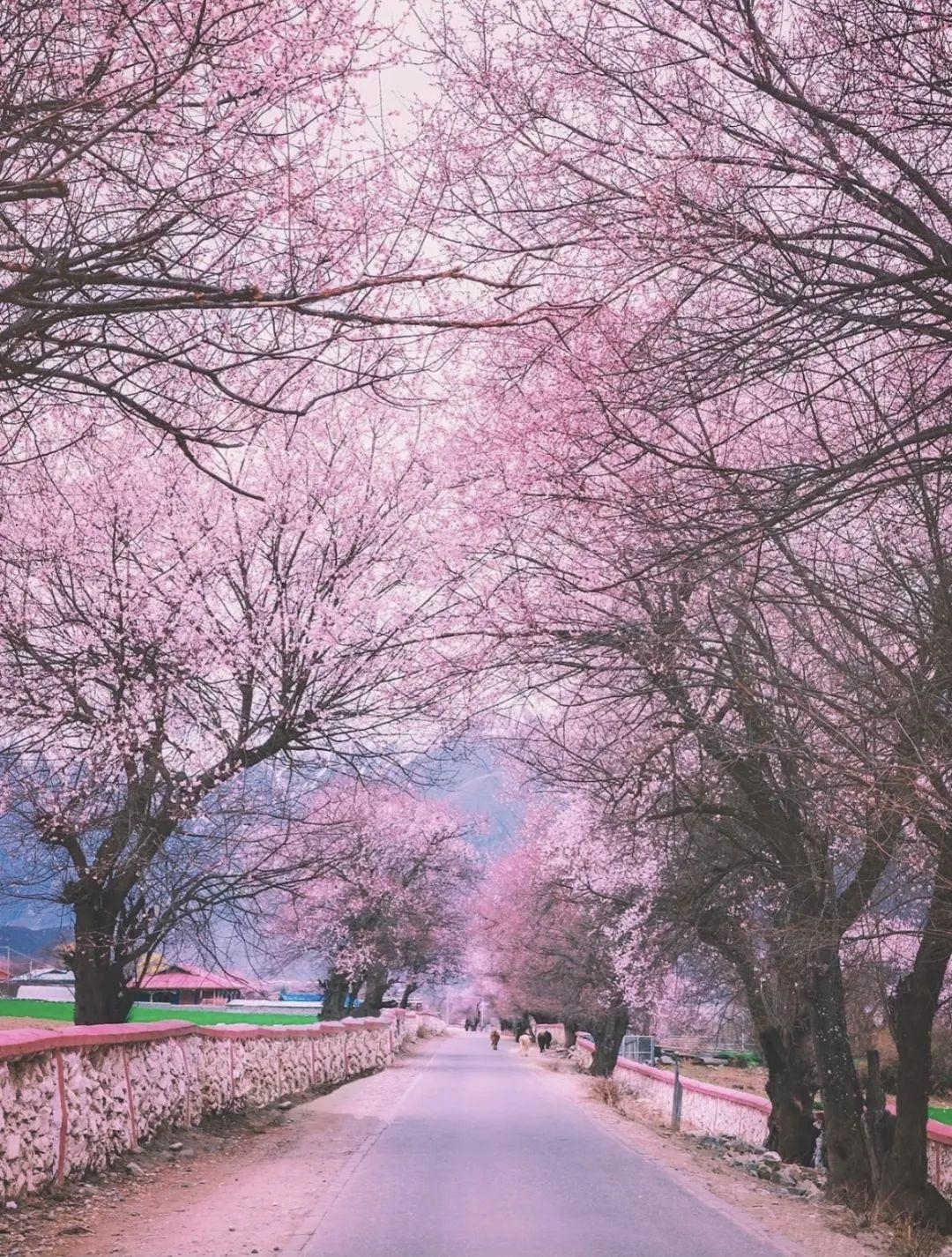 三月初綻的桃花就是這里的迎春花,遠(yuǎn)處雪峰矗立潔白,近處溪流潺潺清澈,再加上漫山遍野粉色的桃花與田間的青苗交相輝映,鋪滿(mǎn)山坡,伸向河谷,蔚然成花海。