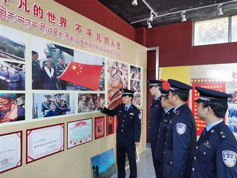日喀則邊境管理支隊樟木邊境派出所民警參觀“國旗老阿媽”紀念館。記者 趙文慧 攝