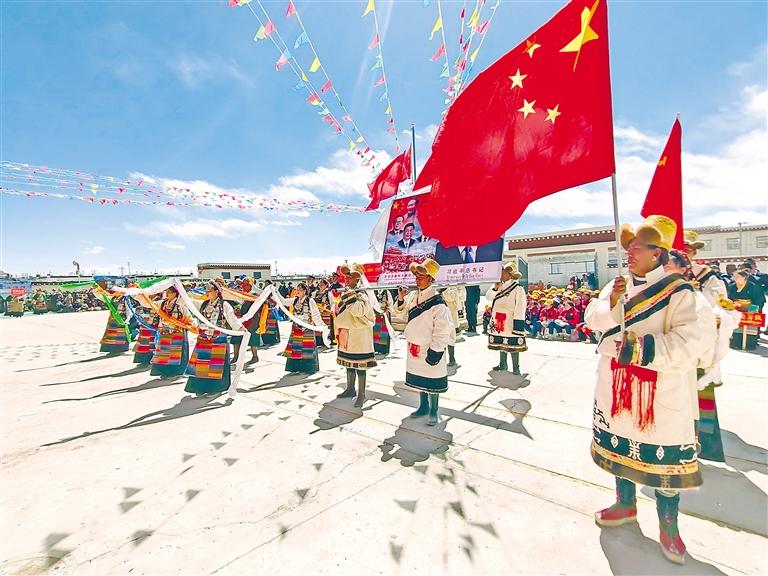 悠揚的歌聲獻給黨,歌唱黨的英明領(lǐng)導;歡快的舞蹈跳起來,跳出人民幸福生活。從珠峰腳下到年楚河畔,從高原牧場到山谷林地,處處升起面面五星紅旗,贊美共產(chǎn)黨的歌聲響徹天際,匯聚起強大動能。