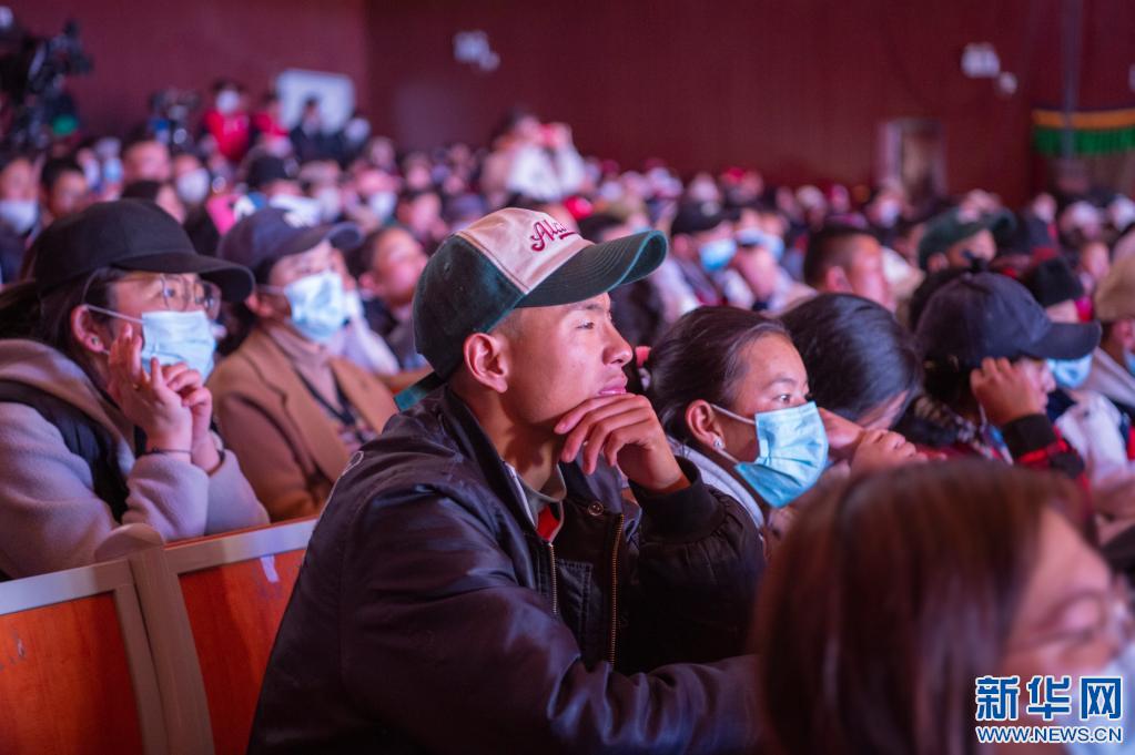 認(rèn)真觀看話劇的觀眾(3月28日攝)。旦增努布 攝