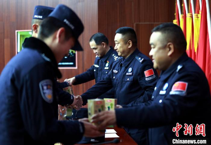 3月31日,授予驗訖章的移民管理警察與領導合影?!⌒じ毁F 攝