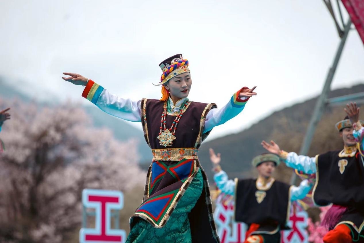 上午10:00開始的的群眾文藝聯(lián)歡會(huì),以歡快的《飲酒踏》開場(chǎng),尼洋河水吟唱春日韻律,米拉雪山涌動(dòng)喜慶樂曲。