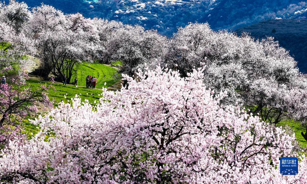 游客在索松村桃花林間游玩(4月5日攝)。新華社記者 姜帆 攝