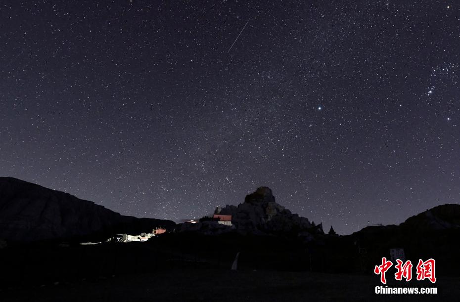 夜晚,西藏阿里地區(qū)古格王國遺址上空流星劃過。