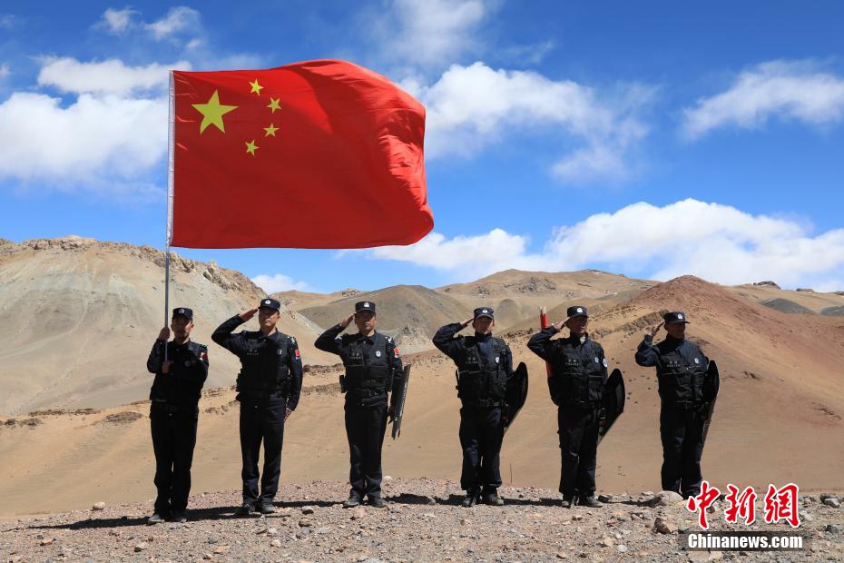 近日,西藏阿里邊境管理支隊(duì)扎西崗邊境派出所組織民警和護(hù)邊員通過乘車巡邏和徒步巡邏相結(jié)合的方式,前往海拔4800米的“守邊固邊第一村”——典角村古格川執(zhí)勤點(diǎn)巡邏,經(jīng)過一個(gè)小時(shí)的車巡和一個(gè)小時(shí)的徒步巡邏,民警到達(dá)了古格川執(zhí)勤點(diǎn)。通過巡邏,及時(shí)掌握了邊境一線情況,確保了邊境轄區(qū)安全穩(wěn)定。圖為移民管理警察與國(guó)旗合影。攝影:郭敬遠(yuǎn)