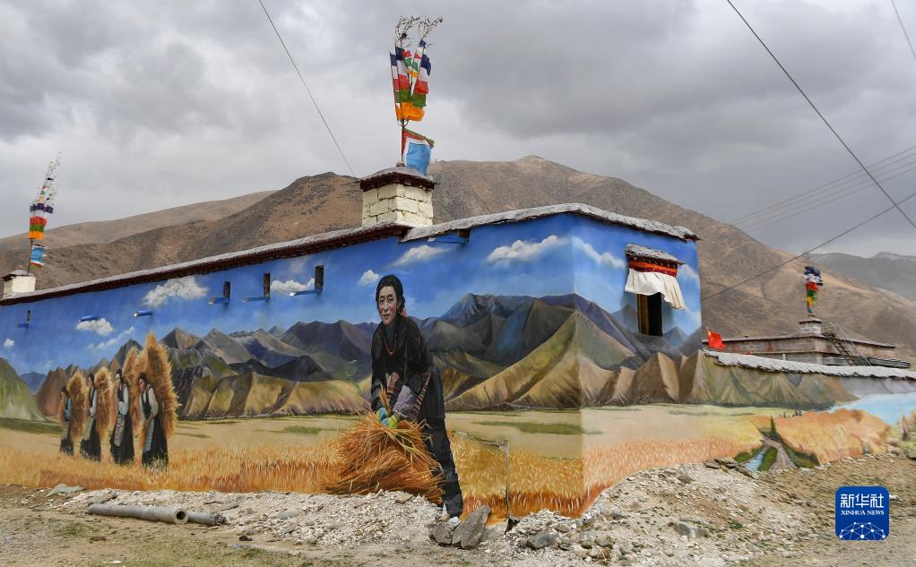 這是4月10日在拉薩市達孜區(qū)章多鄉(xiāng)恰村拍攝的墻畫。新華社記者 晉美多吉 攝