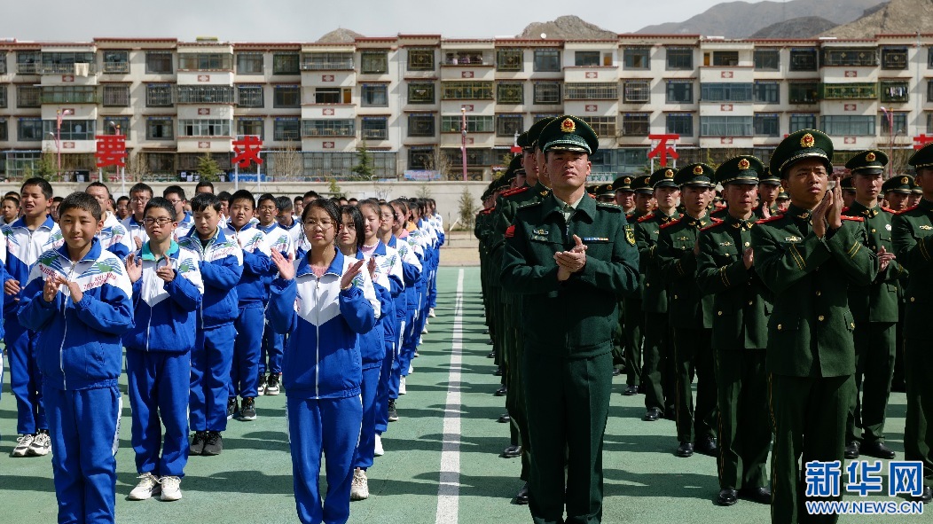 14日上午,武警西藏總隊(duì)某部與拉薩市第八中學(xué)在拉薩舉行軍民聯(lián)誼共育簽約儀式,來(lái)自武警總隊(duì)某部的官兵和拉薩市第八中學(xué)的師生約400人參加了簽約儀式。