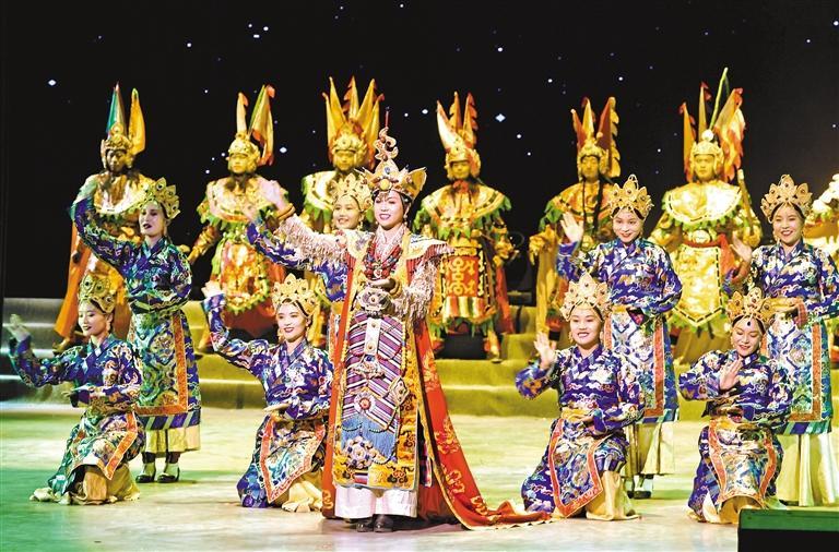 歌舞劇《天邊格?;ā啡雵谑邔梦娜A獎提名;民族團結(jié)題材話劇《八廓街北院》主演仁青頓珠摘得文華表演獎;廣場舞《奮進新時代》榮獲第十九屆群星獎;少兒藏戲《喜迎新春》獲小梅花集體獎;德吉白珍、旦增夢朗兩名小演員憑借在藏戲《古韻新聲》中的精湛表演,獲得第二十六屆“中國少兒戲曲小梅花薈萃”活動“小梅花”稱號。至此,西藏已有3名戲曲小演員獲此殊榮。