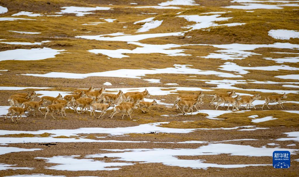 這是在羌塘國家級自然保護區(qū)那曲市雙湖縣區(qū)域內拍攝到的藏羚羊(4月15日攝) 。新華社記者 姜帆 攝