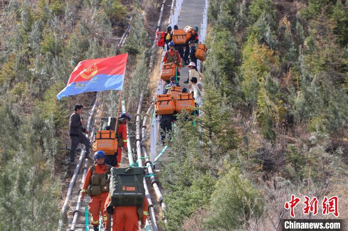 圖為演練中,消防員進(jìn)行高山滅火。羅士鑫 攝
