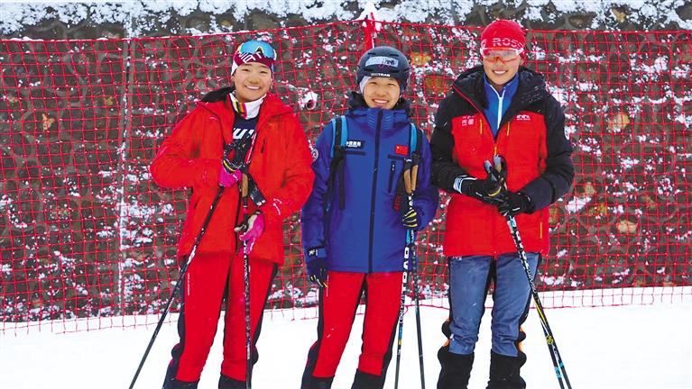 圖為玉珍拉姆(中)與好朋友索朗曲珍(左)、扎西旦珍(右)在雪地中合影。 本報記者 鄭璐 曉勇 袁海霞 攝