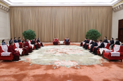 四月二十五日,河南省委書記樓陽生、省長(zhǎng)王凱在鄭州會(huì)見班禪額爾德尼·確吉杰布一行。 記者 董亮 攝