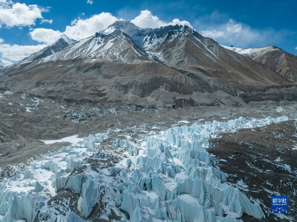 這是珠峰腳下的中絨布冰川(5月15日攝,無人機照片)。新華社記者 孫非 攝