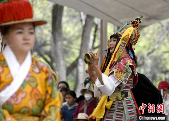 被譽(yù)為藏文化“活化石”的藏戲,集說唱、表演、歌舞、文學(xué)于一體。李林 攝