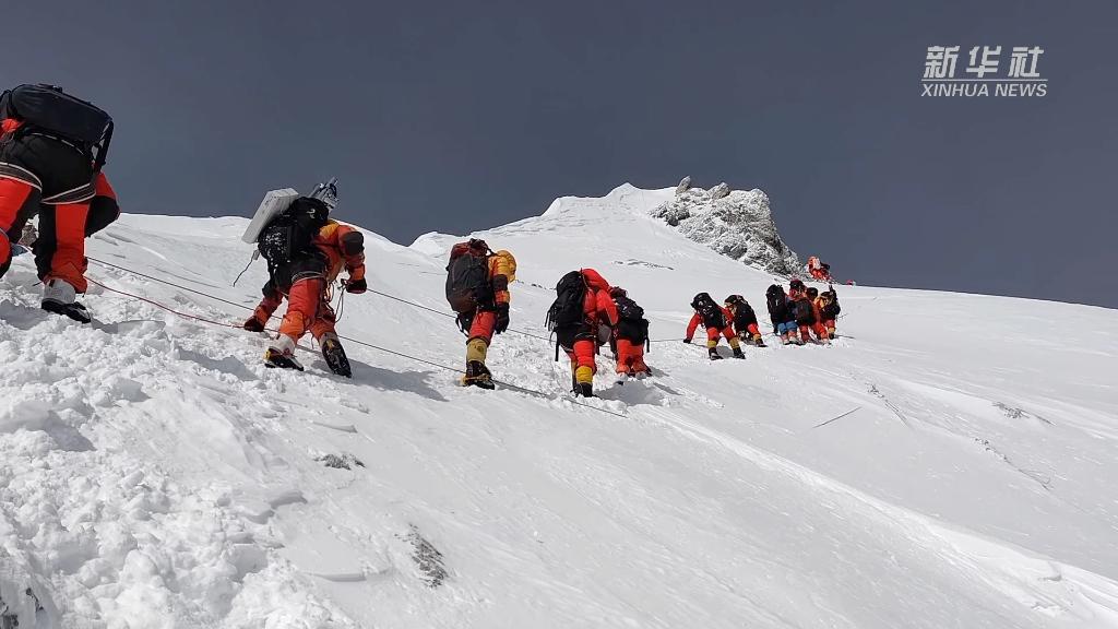 這是我國(guó)珠峰科考繼2022年之后,再次突破8000米以上海拔高度。當(dāng)日,科考隊(duì)員在珠峰峰頂利用科學(xué)儀器,采集珠峰峰頂?shù)难┍鶚悠罚糜诜治鰵夂颦h(huán)境指標(biāo)。