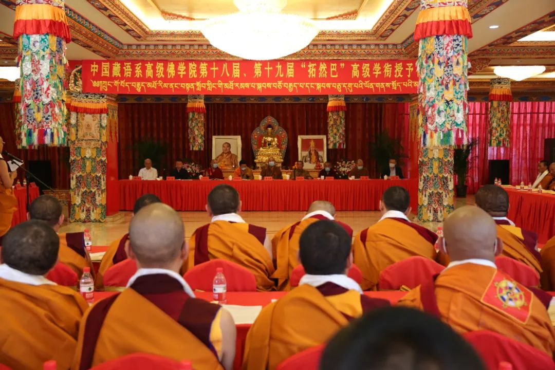 5月23日,藏傳佛教第十八屆、十九屆“拓然巴”高級(jí)學(xué)銜授予儀式在北京中國藏語系高級(jí)佛學(xué)院舉行。來自藏傳佛教格魯派、寧瑪派、薩迦派、噶舉派、苯波派的62名學(xué)員,經(jīng)過3年刻苦學(xué)習(xí),圓滿完成學(xué)業(yè),取得中國藏語系高級(jí)佛學(xué)院高級(jí)學(xué)銜班畢業(yè)證書。經(jīng)過嚴(yán)格的資格審查、辯經(jīng)考試、論文答辯,62名學(xué)員全部獲得藏傳佛教“拓然巴”高級(jí)學(xué)銜。