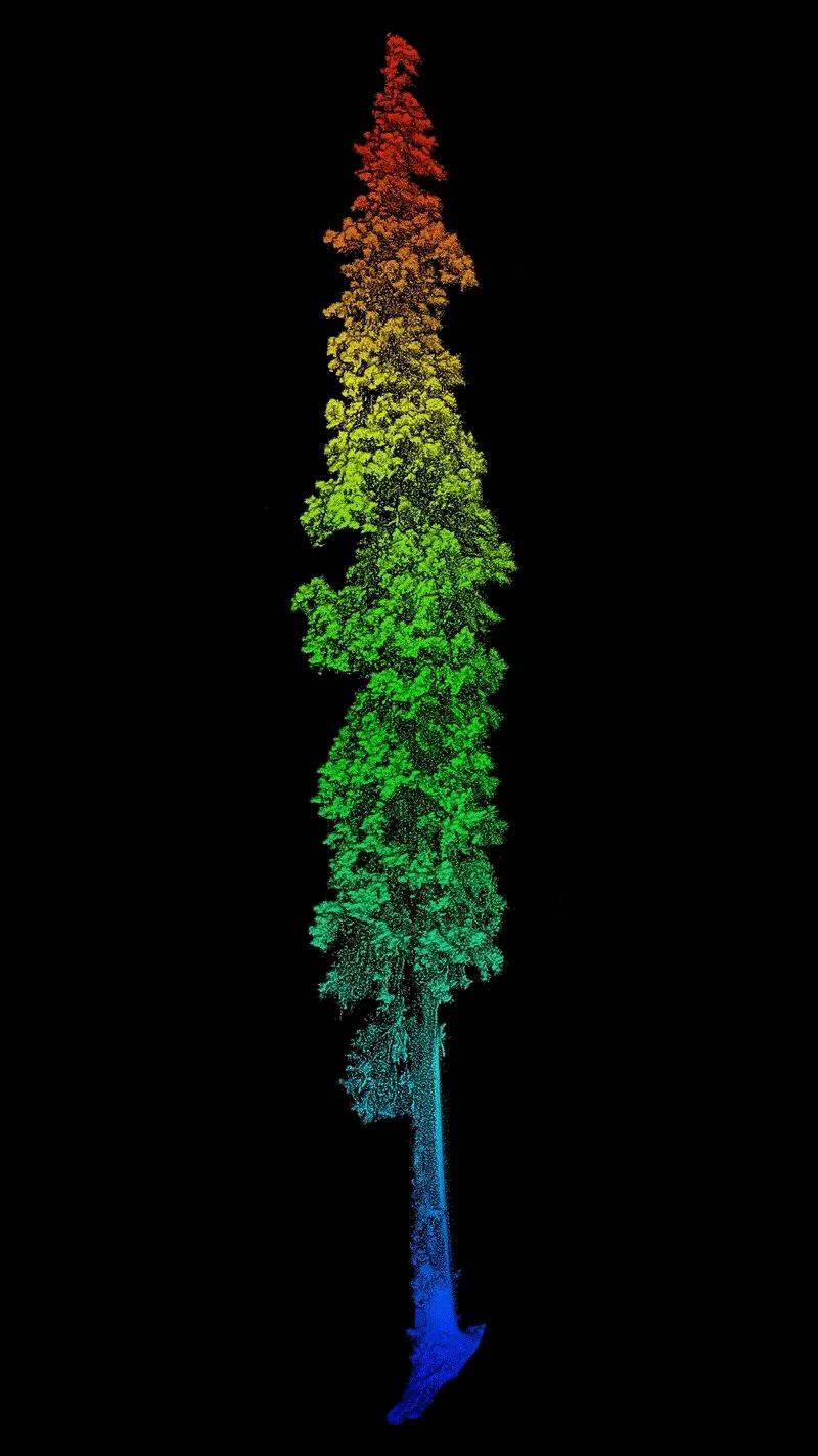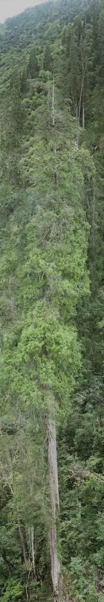 通過無人機與背包激光雷達相結合,對西藏柏木巨樹聚生區(qū)域進行精準測量,得到了巨樹群的精準三維點云模型。經(jīng)過高度測量,發(fā)現(xiàn)其中一棵西藏柏木高達102.3米,該發(fā)現(xiàn)同時刷新了中國與亞洲的最高樹紀錄,躋身按樹種排名的世界最高樹列表,位列第二。研究團隊獲取了該樹的精細三維點云數(shù)據(jù),測量其胸徑為293厘米,并采用無人機攝影的方式獲取了巨樹等身照。