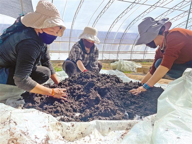 某農(nóng)業(yè)科技公司的員工在大棚里工作。 旦增蘭澤 攝