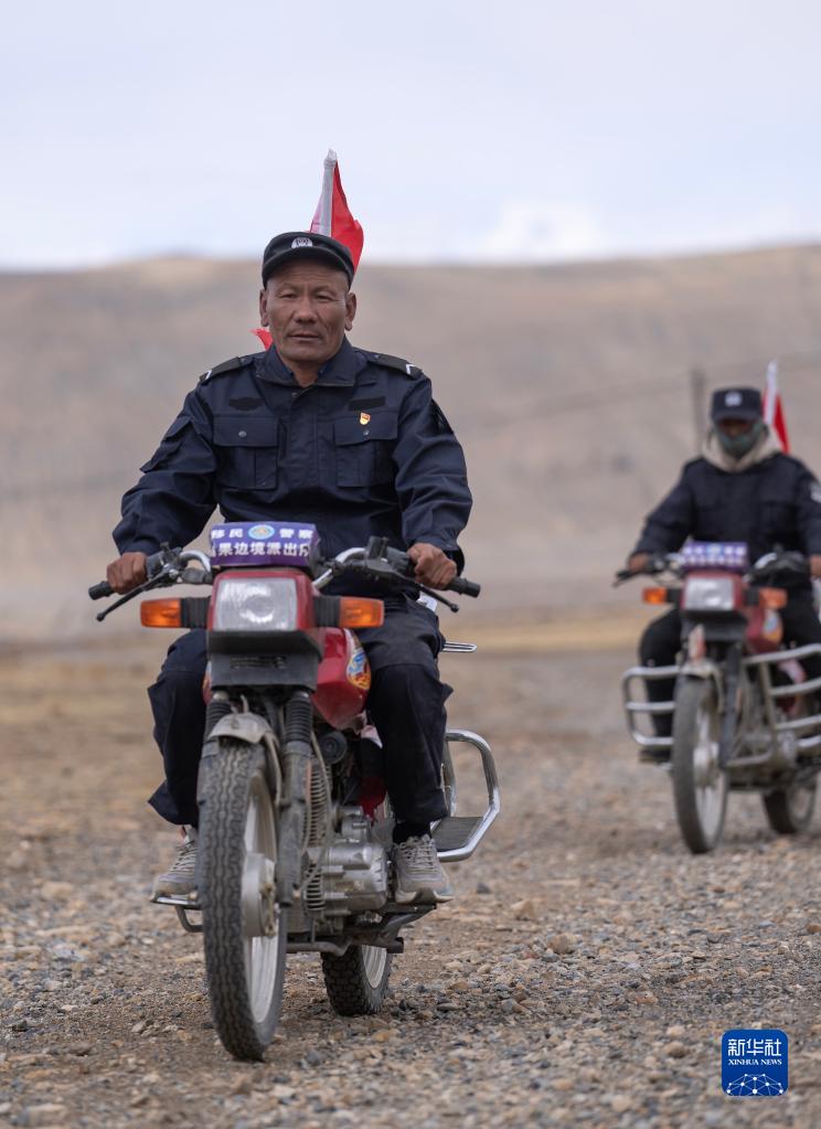 車輪滾滾,黃沙漫漫,一隊(duì)摩托車風(fēng)馳電掣般駛來(lái)……這里是平均海拔超過(guò)5000米的西藏日喀則市薩嘎縣昌果鄉(xiāng),雖然已是初夏時(shí)節(jié),但依然寒風(fēng)刺骨。50歲的昌果護(hù)邊聯(lián)防隊(duì)隊(duì)長(zhǎng)石角帶領(lǐng)18名隊(duì)員,騎著摩托車在邊境線巡邏。