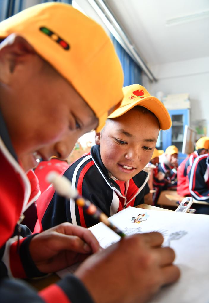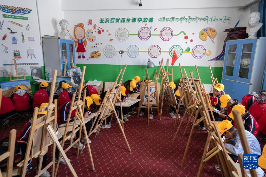 扎西宗鄉(xiāng)完全小學(xué)的學(xué)生在上美術(shù)課(6月5日攝)。新華社記者 晉美多吉 攝