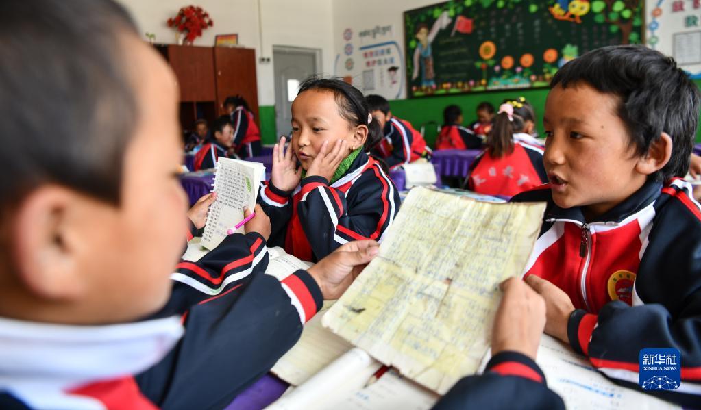 扎西宗鄉(xiāng)完全小學(xué)的學(xué)生在背乘法口訣(6月5日攝)。新華社記者 晉美多吉 攝