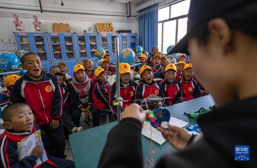 6月5日,扎西宗鄉(xiāng)完全小學(xué)的學(xué)生在上科學(xué)課。新華社記者 費(fèi)茂華 攝