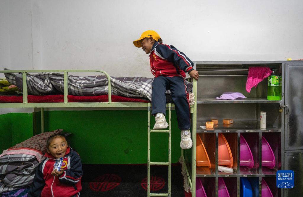 6月5日,扎西宗鄉(xiāng)完全小學(xué)的學(xué)生在宿舍準(zhǔn)備就寢。新華社記者 費(fèi)茂華 攝