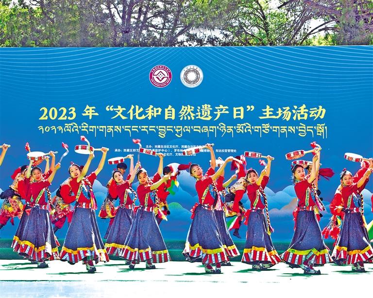 圖為西藏2023年“文化和自然遺產(chǎn)日”主場活動現(xiàn)場,西藏大學(xué)藝術(shù)學(xué)院帶來的舞蹈《東洛熱巴》。記者 旦增蘭澤 攝