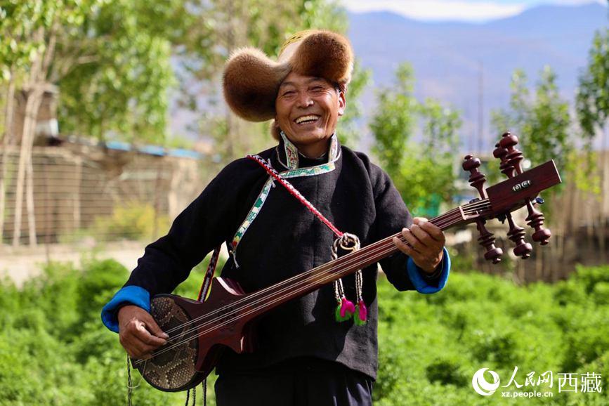 傳承人羅布次旦在彈奏扎念琴。人民網(wǎng)記者 次仁羅布攝