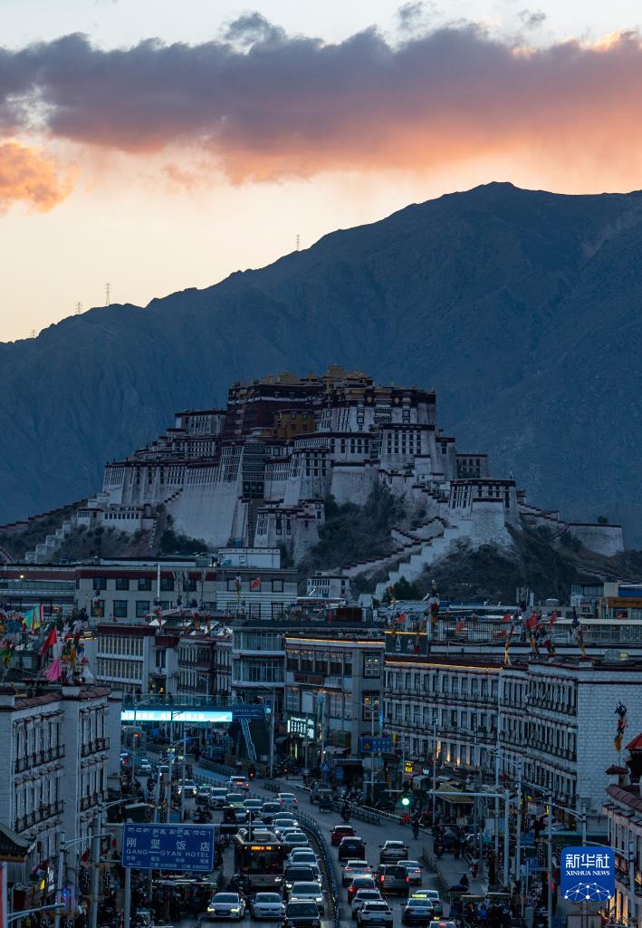 這是日落時分的布達拉宮(6月7日攝)。新華社記者 孫非 攝