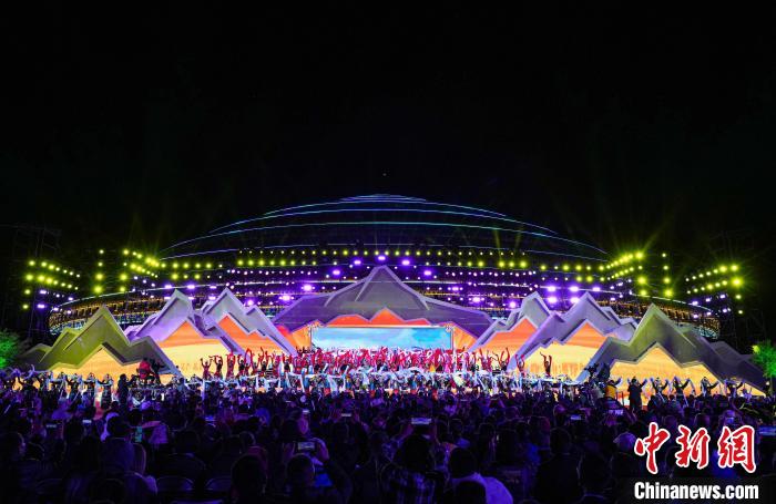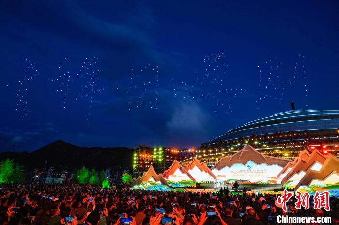 開幕式上,由300架無人機組成的暖場表演在日喀則珠峰文化旅游創(chuàng)意產(chǎn)業(yè)園區(qū)上空精彩呈現(xiàn),組成“珠峰故里、吉祥日喀則,歡迎您!”等陣型。匠心獨運的創(chuàng)意設計,流光溢彩的聲光電效果,以恢弘氣勢和華麗造型,展示日喀則的開放包容。文藝表演由序《珠峰頌歌》、上篇《戀上青稞》、下篇《極境暢想》和尾聲《吉祥日喀則》組成。聲,是情的流露;舞,是意的表達。文藝演出將民眾的生活與藝術相結合,融合傳統(tǒng)文化與現(xiàn)代歌舞等藝術形式,既富有傳統(tǒng)特色又極具時代魅力,將日喀則各族人民的喜悅和游情盡情抒發(fā),充分表達了日喀則各族人民對美好生活的熱愛和對祖國的祝福歌頌。