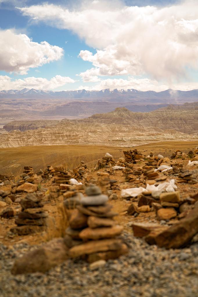 札達(dá)土林觀景臺(tái)前,許多的瑪尼石堆。(5月25日攝)
