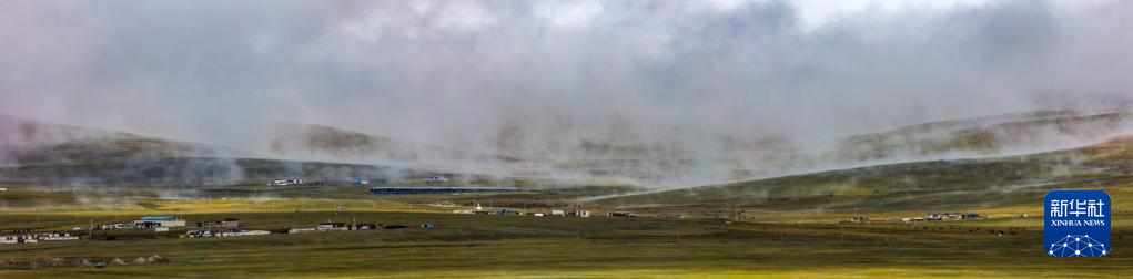 6月16日在國(guó)道317線那曲段拍攝的草原晨霧風(fēng)光(拼接照片)。新華社記者 姜帆 攝