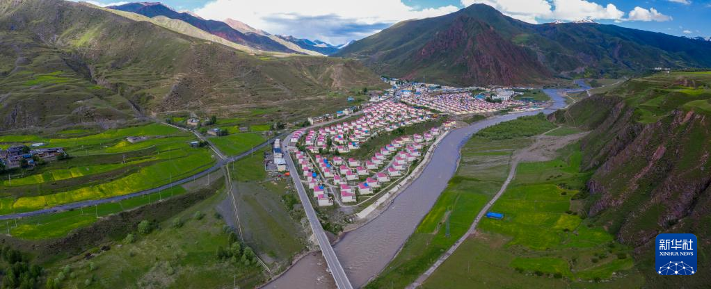 6月22日在國(guó)道317線昌都段拍攝的丁青縣的村莊(無(wú)人機(jī)照片)。新華社記者 姜帆 攝