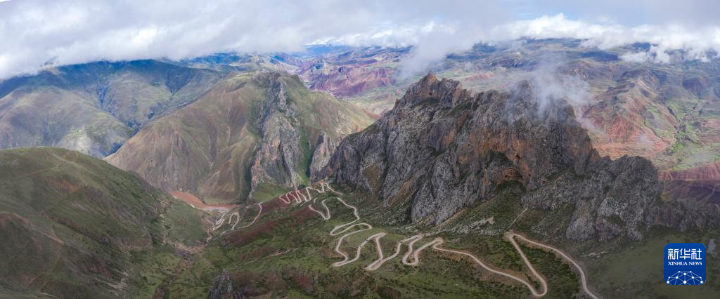 6月17日在國(guó)道317線昌都段丁青縣附近拍攝的鄉(xiāng)村公路景觀(無(wú)人機(jī)照片)。新華社記者 姜帆 攝
