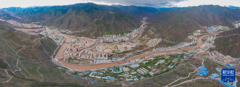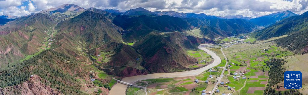 6月22日在國(guó)道317線昌都段拍攝的丁青縣尺牘鎮(zhèn)全景(無(wú)人機(jī)照片)。新華社記者 姜帆 攝