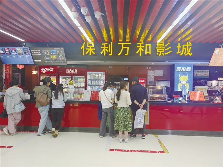 市民在保利萬(wàn)和影城購(gòu)買(mǎi)電影票。