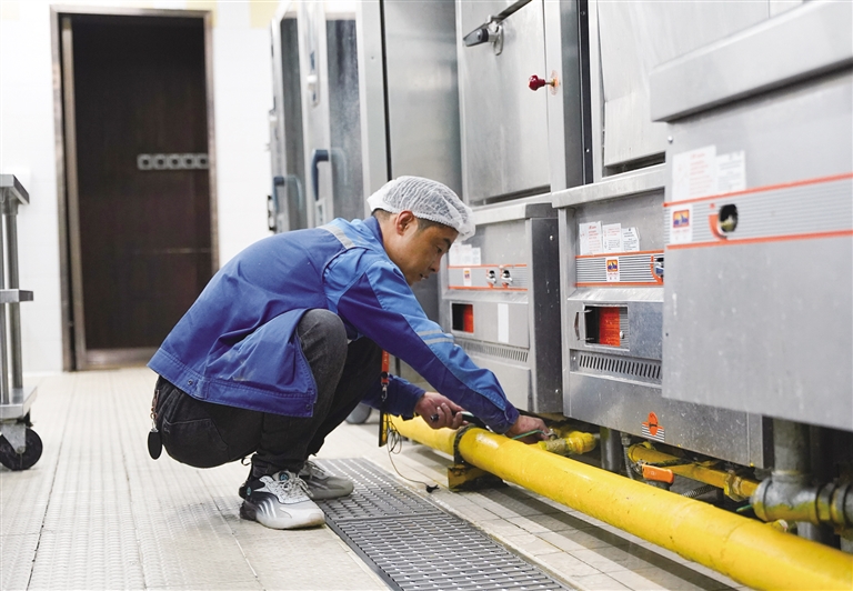 在香格里拉酒店,拉薩暖心公司工作人員對酒店的鍋爐房、廚房等地開展了燃?xì)獍踩[患排查。拉薩暖心公司客戶服務(wù)部抄表中心主任張雁龍手拿檢測儀器,對鍋爐房、廚房內(nèi)的燃?xì)夤艿浪薪涌?、燃?xì)庠罹?、軟管、燃?xì)鈭缶?、安全閥等全部進(jìn)行了檢查,并對每一項檢查結(jié)果進(jìn)行了登記。