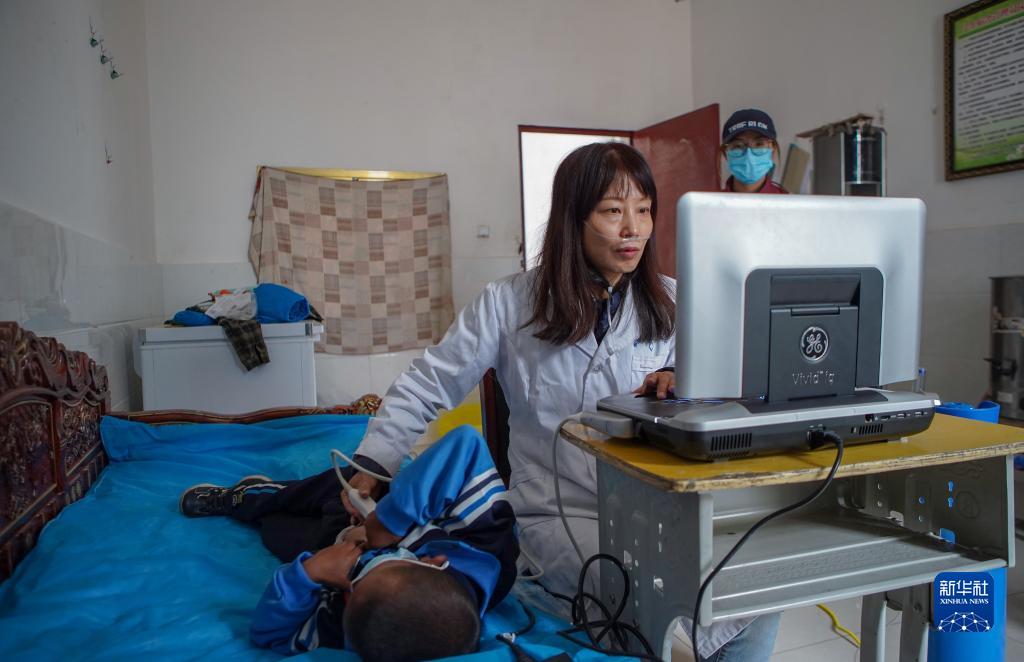 7月4日,“心佑工程”項(xiàng)目團(tuán)隊(duì)醫(yī)生給疑似患兒做心臟彩超。新華社記者 邵澤東 攝